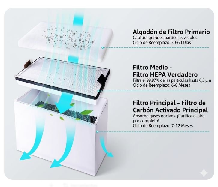 - Seguro con alarma de sobrecarga: equipado con una función antiobstrucción única, la alarma automática le indicará un «pitido de pitido» para recordarle que debe reemplazar nuestro filtro. El prefiltro tiene un ciclo de reemplazo recomendado de 30-60 días.
