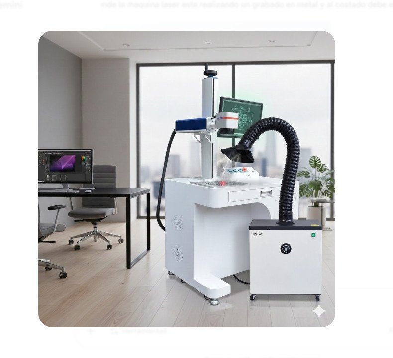 Láser Galvo Fibra: Extracción de polvo metálico y humos de marcado.