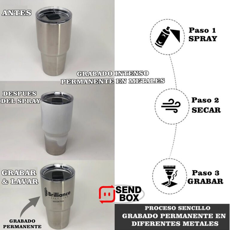 - HIGH QUALITY BLACK MARK es una tinta negra de marcado láser de uso general para crear una marca negra permanente de alta calidad en una variedad de metales diferentes.