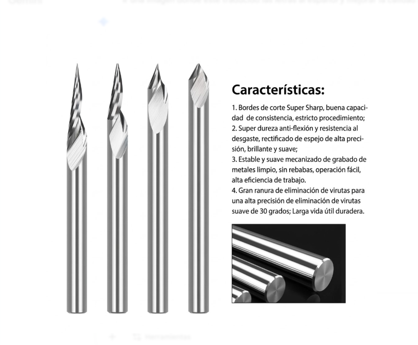 4.Mecanizado de grabado de metales, liso y limpio, sin rebabas, fácil operación, alta eficiencia de trabajo.