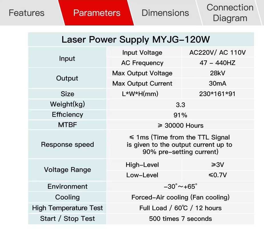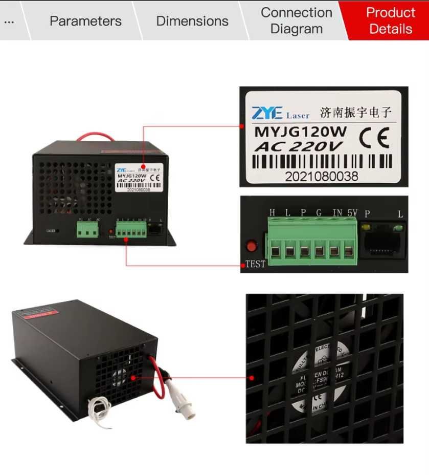 Fuente de Poder 120W Laser Co2 para tubos RECI